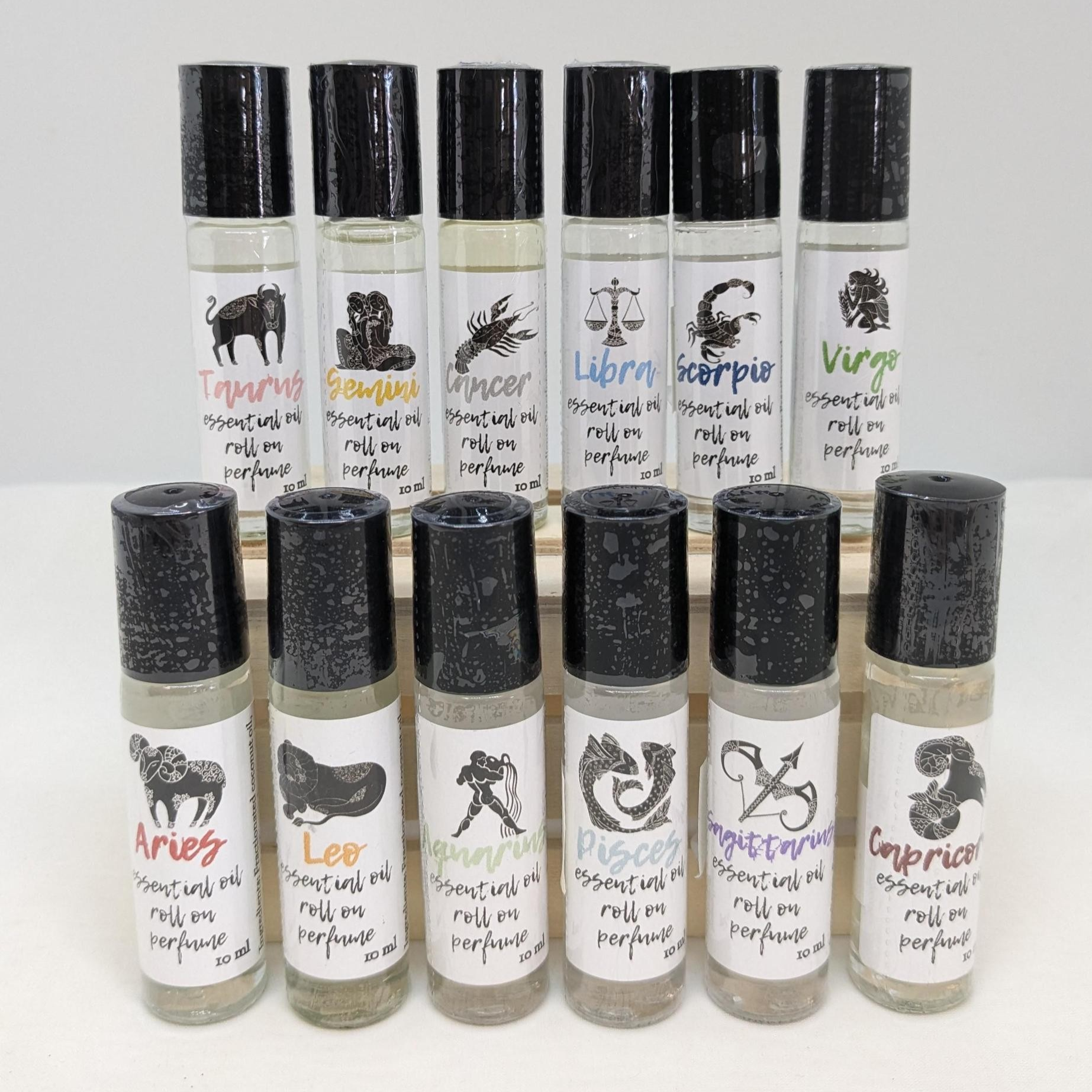 Aries: Ingredients: Fractionated coconut oil with Essential oils of Rose, Lemon & Lavender