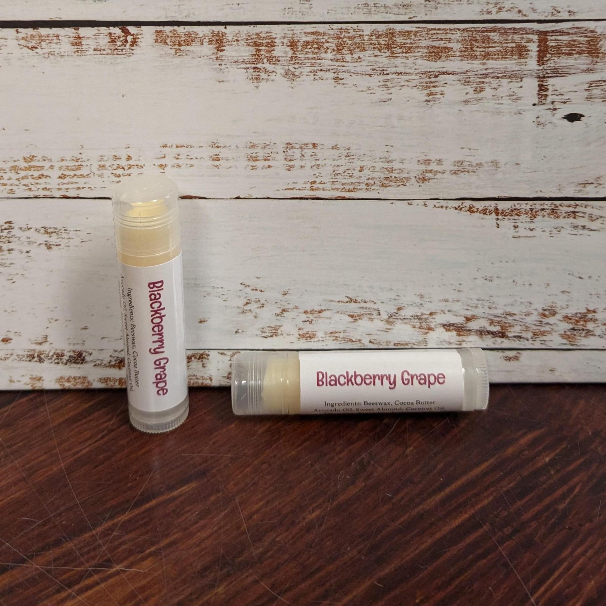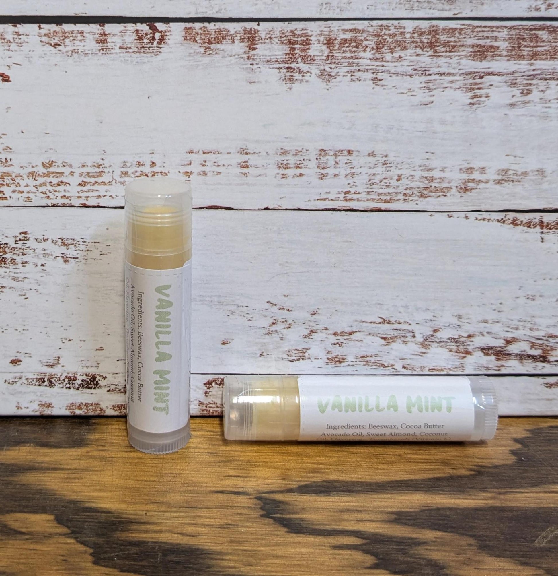 Ingredients: Beeswax, Cocoa Butter, Avocado Oil, Sweet Almond Oil, Coconut Oil, Flavor Oil and Vitamin E.